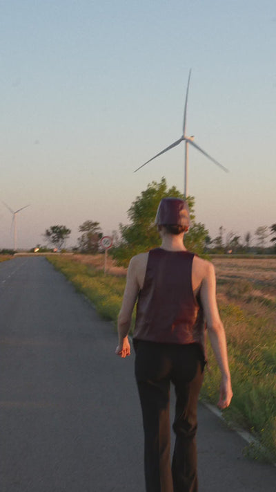 The Arri Belt is a bold accessory crafted from medium-stiff leather. It features a minimalist yet stylish design, with metal rivets placed evenly along the sides, adding character and texture. The rivets are round and metallic, creating a contrast with the smooth leather surface and highlighting the belt's refined aesthetic.